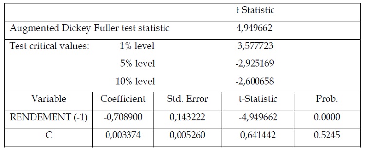 3.2.4.1. Tests de stationnarité de la série des rendements mensuels du marché :