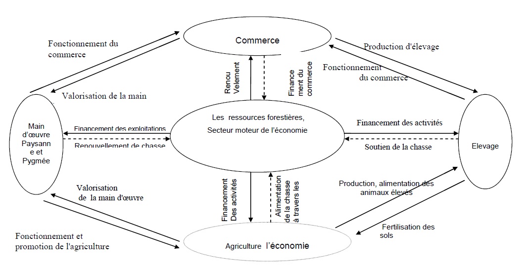 Relativement à ce système de fonctionnement, on note une grande quantité d’argent qui circule dans le village à travers les produits de chasse (la viande de brousse), les produits agricoles et les PFNL mais seulement une petite quantité d’argent qui est utilisée pour payer la nourriture et les biens mentionnés et le reste d’argent permet de renouveler davantage les activités de chasse.