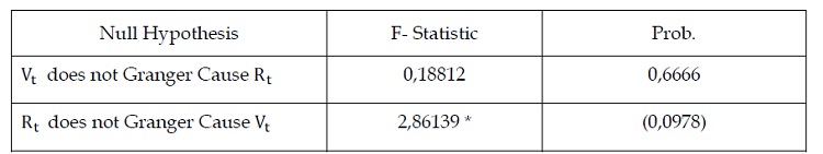 Le tableau ci-dessus détecte une causalité unidirectionnelle au sens de Granger du