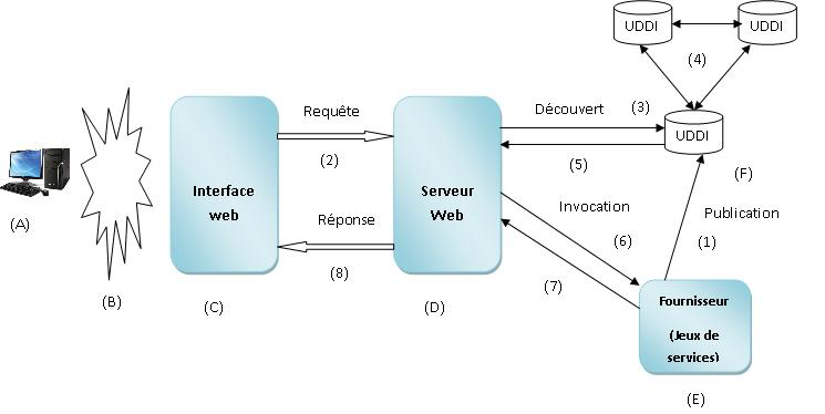 La réponse (résultat) de la requête formulée est renvoyée au serveur web. Cette réponse contient essentiellement les caractéristiques nécessaires à l’utilisation des services retrouvés correspondant à la demande (détails sur le fournisseur, type de connexion, adresse du service ect.).