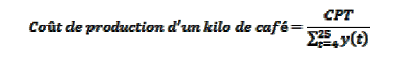 Le coût de production d’un kilo de café correspond au rapport du coût minimum total de production par la somme des rendements de l’année 4 à 25 :