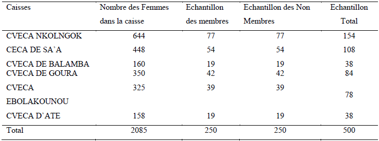 l’échantillonnage de cette étude est constitué de 500 femmes dont 250 membres et 250 non membres des caisses du réseau A3C.
