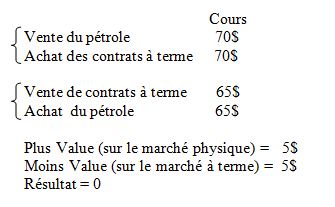 Conclusion : Les gains et les pertes sur le « papier » compensent les pertes ou les gains sur le physique, c’est par cette flexibilité que les marchés à terme peuvent exercer cette fonction.