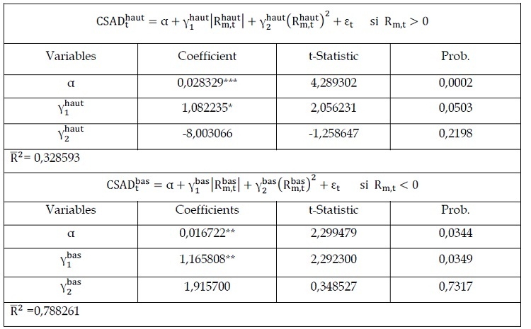 Tableau 3.9: Estimation du comportement grégaire dans les marchés boursiers tunisien