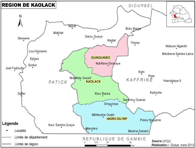 − 3 départements: Kaolack, Nioro du Rip, Guinguinéo