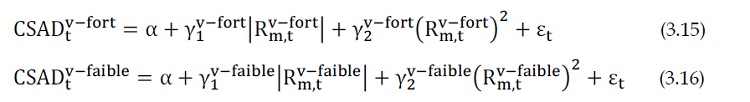 Tableau 3.10 Estimation du comportement grégaire durant les périodes de fort et faible volume de transactions sur le marché boursier tunisien