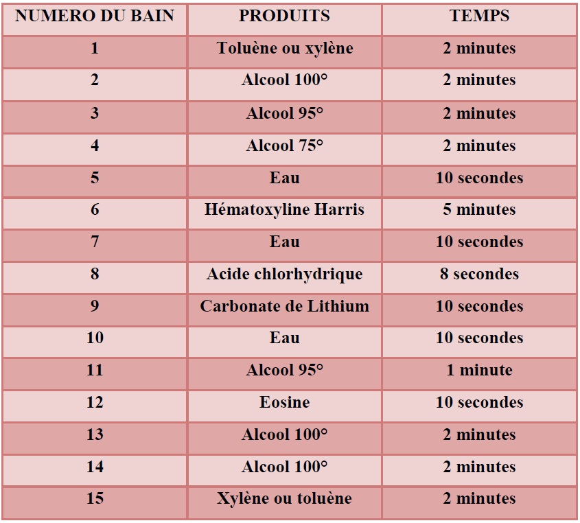 Tableau 3 : Coloration « Hématoxyline Eosine »