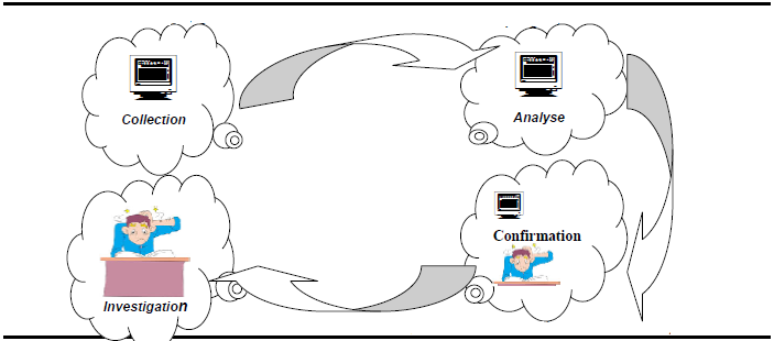La première étape est la collection, celle où les travaux des étudiants sont soumis à l’outil pour vérification. La seconde est celle de l’analyse, où le logiciel de détection de similarité produit un rapport où figurent les passages potentiellement plagiés avec un taux de similarité. Faut-il mentionner que l’efficacité de la détection dépend du type de logiciel de détection utilisé. La troisième étape est celle de la confirmation, c’est celle où l’on décide si la similarité relevé par l’engin constitue plagiat ou non. A ce stade l’expertise humaine est nécessaire. La quatrième étape est, quant à elle, celle où l’on reconsidère et investigue davantage les travaux plagiés pour finalement infliger une pénalité adéquate. (Lancater, 2003)