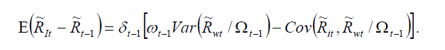 Maintenant, nous allons utiliser le MEDAF international conditionnel à prix de risque variable dans l’objectif de chiffrer l’impact de l’augmentation du degré de d’intégration des marchés financiers sur les gains substantiels attendus des stratégies de diversification internationale de portefeuilles. Nous calculons les gains additionnels de la diversification internationale en utilisons la relation suivante :