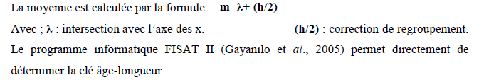 L’analyse de structures d’âge tient compte d’une clé âge-longueur, cette clé est déterminée par méthode directe ou indirecte, dans notre étude nous procéderons par les méthodes indirectes.