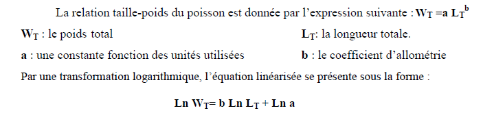 La relation taille-poids du poisson est donnée par l’expression suivante :