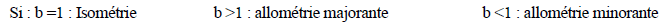 b est supérieur à 3, l’allométrie est majorante ; le poids croit plus vite que la taille de l’individu (Harchouche, 2006).