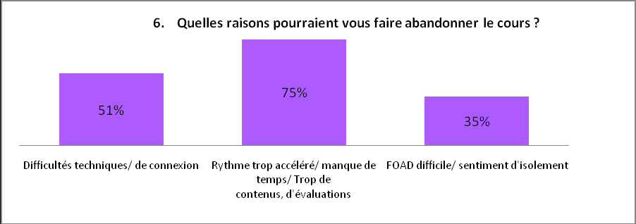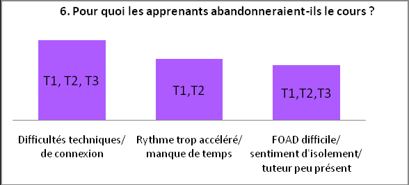 Figure 4-11 : Questionnaire1-apprenants, Q6 : raisons pour abandonner le cours