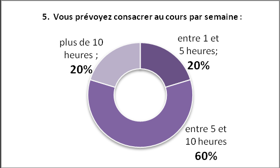 C’est intéressant de remarquer que, d’après les réponses que les apprenants ont données sur l’enquête, 80% d’entre eux s’étaient inscrits à cette formation avec l’idée de lui accorder entre 1 et 10 heures par semaine.