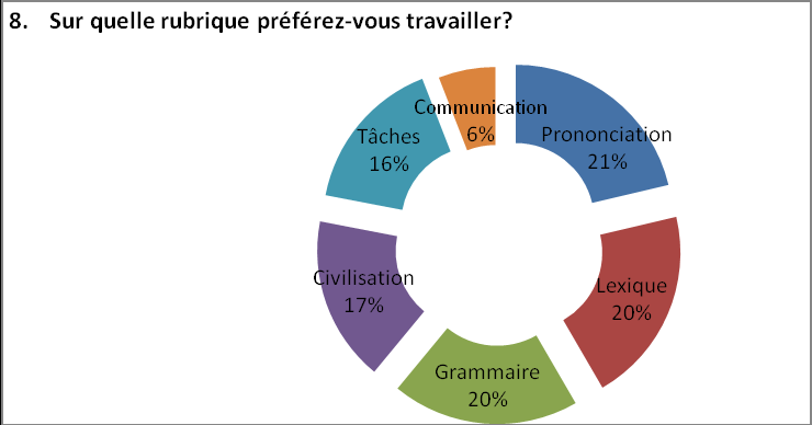 Figure 4-6 : Questionnaire1-apprenants, Q8 : rubriques préférées