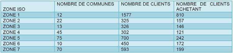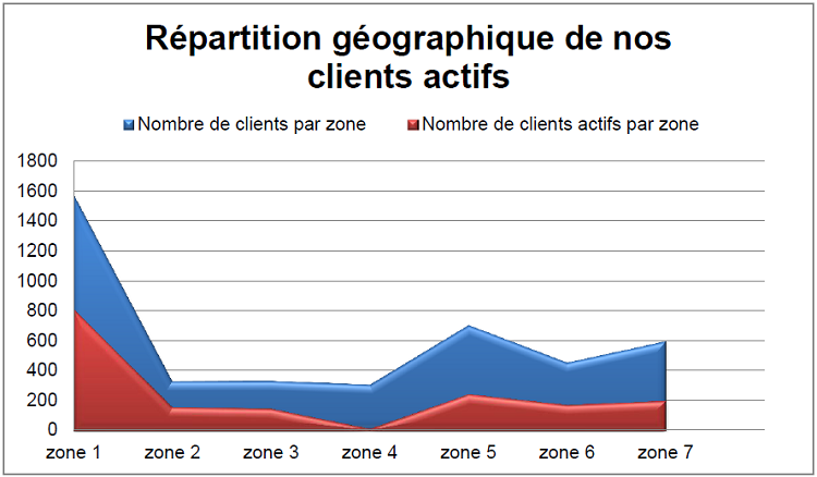 Ce graphique permet comparer le nombre de clients par zone au nombre de clients actifs à cette même zone.
