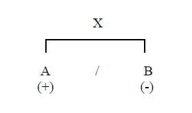 Selon cette technique, la relation de base est la relation de disjonction, laquelle oppose deux termes dont l’un est l’inverse de l’autre et réciproquement.(208) Ces deux termes se réfèrent à la-même catégorie de réalité, appelée axe sémantique.(209)