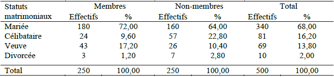 En milieu rural le statut matrimonial est un aspect sociologique qui peut jouer un rôle important dans l’accès au financement, le tableau 8 présente les différents statuts des enquêtées.