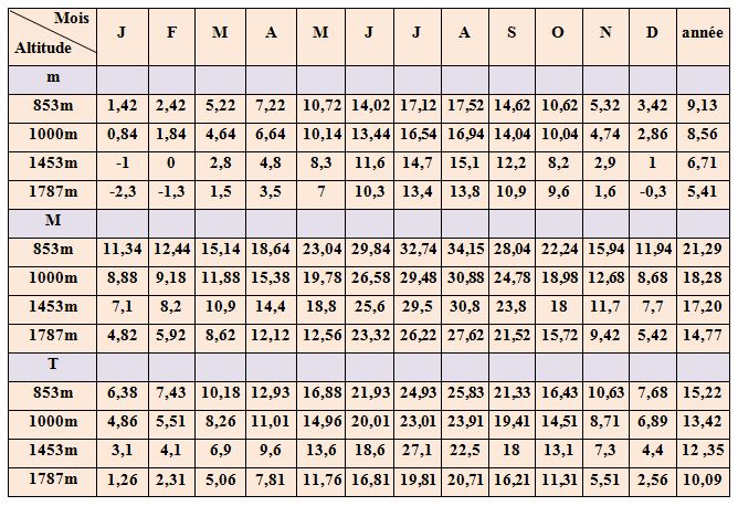 Tableau 3.1: données thermiques corrigées relatives à la zone d’étude, enregistrées durant la période 1913 – 1934 (SELTZER, 1946).