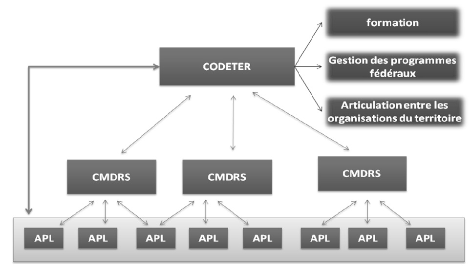 Avec la définition des APL arrêtée dans chaque municipalité, le processus est déjà lancé. L’occasion de l’élaboration du Plan devrait être saisie pour consolider le Codeter et lui donner toute sa dimension institutionnelle. Le moment sera propice pour que cristallisent dans un projet commun toutes les dynamiques locales relevée sur le terrain et dont le présent mémoire a rendu compte. Ce plan est destiné à constituer un instrument auxiliaire de gestion sociale qui permettra aux acteurs locaux et à l’État de préciser avec l’ensemble des instances concernées la faisabilité politique et technique des actions projetées (MDA/SDT 2005).
