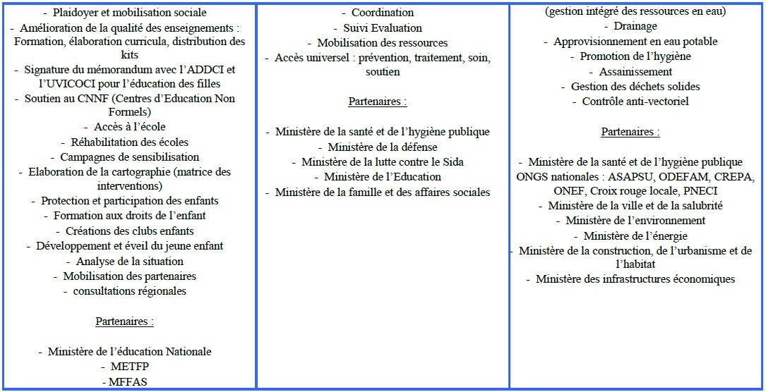 De manière cohérente, coordonnée et complémentaire et en vue d‘assurer une réponse à la fois humanitaire et de relèvement économique, le Gouvernement et les partenaires humanitaires s‘étaient convenue d‘appliquer l‘approche de responsabilité sectorielle.