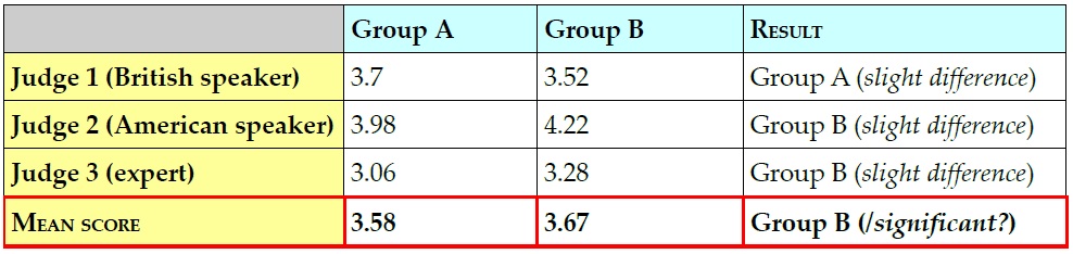 American English speaker – are just as inconclusive. While Group B has a mean score of 4.24