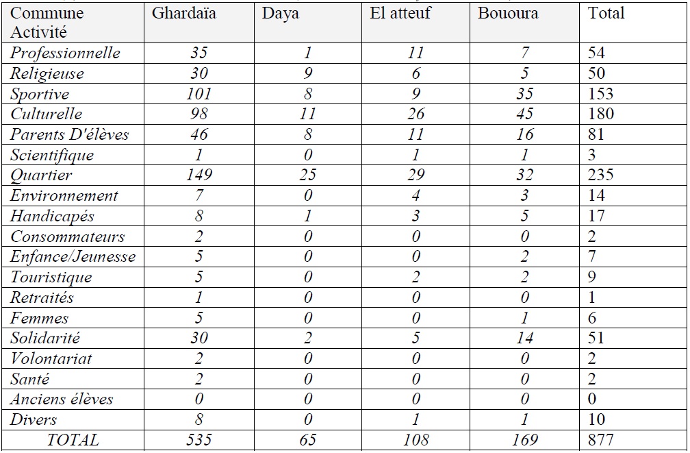 La proximité géographique dans la région du Mzab, a certainement donné un élan favorable à l’émergence d’un nombre important d’associations couvrant les principaux secteurs de la région.