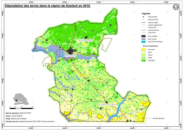 Carte 7 : Dégradation des terres dans la région de Kaolack en 2010