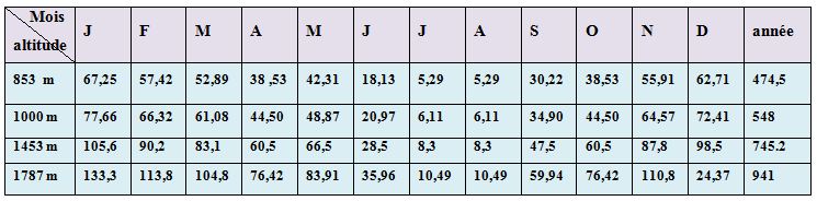Tableau3.2: données pluviométriques mensuelles de la zone d’étude corrigées et extrapolées à partir de celle enregistrées par l’ONM (2006) durant la période 1966 – 1989.