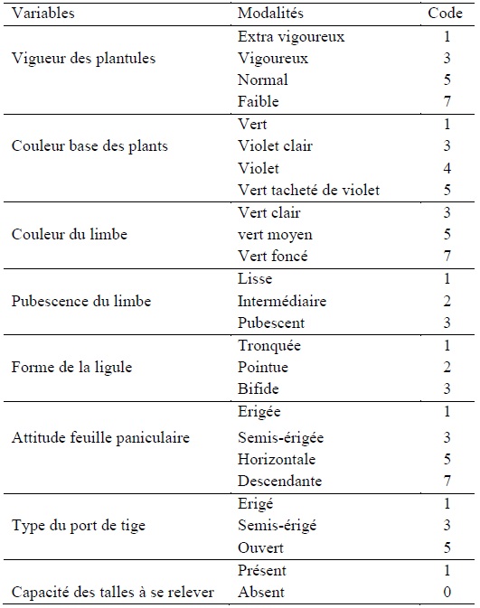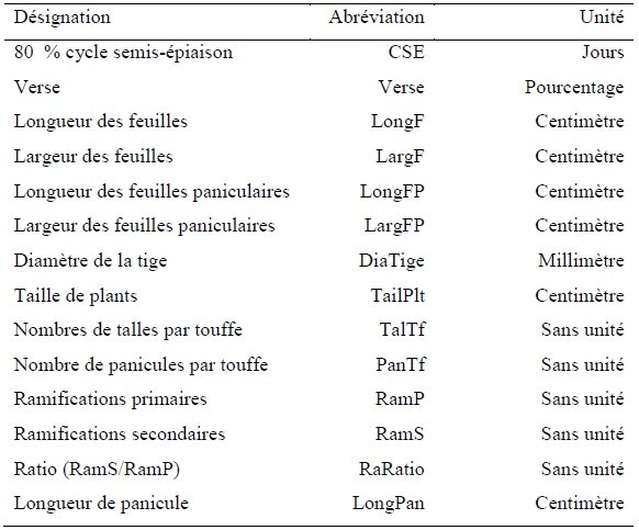 Au total, 14 caractères quantitatifs (tableau 4.2) et 8 qualitatifs (tableau 4.3) ont été