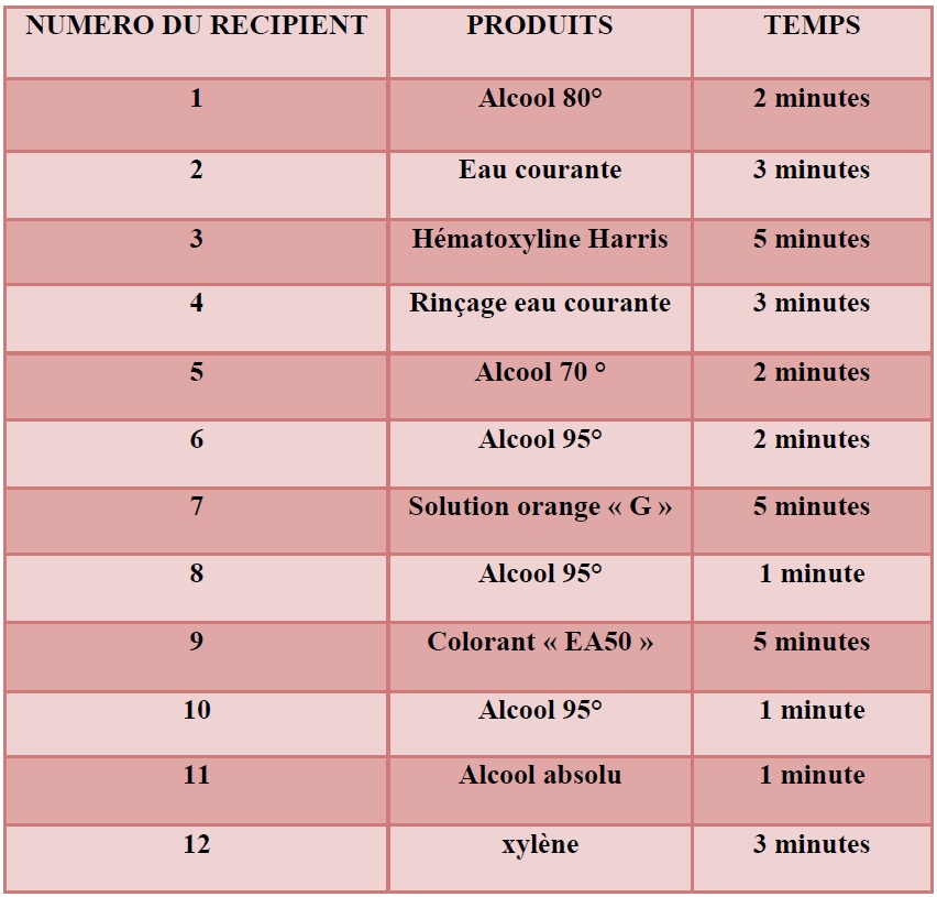 – On place les frottis dans le portoir et on procède à la coloration appelée « PAPANICOLAOU »