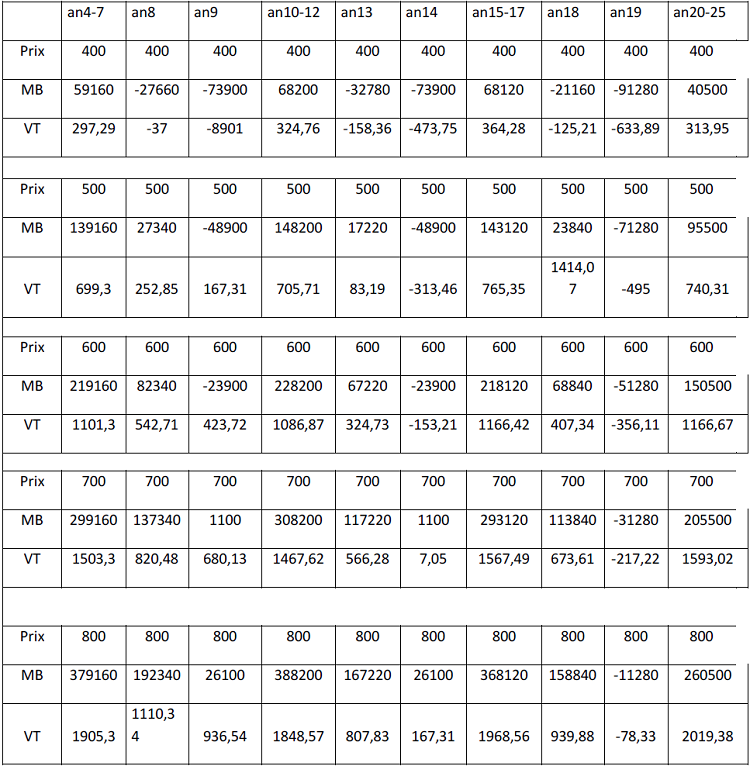 L’importance ici est de savoir à partir de quel prix la MB devient importante pour le producteur (figure 6).