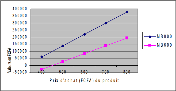 D’une façon générale, la figure 5 illustre l’augmentation de la MB suivant le prix d’achat du produit. Cette augmentation de la MB suivant l’évolution positive du prix est un fait évident.