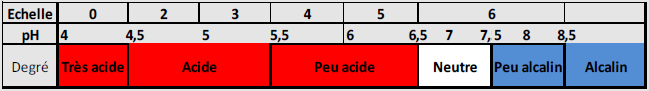 Remarque : la valeur du pH souhaitable pour un sol donné est d’abord fonction des cultures que l’on veut pratiquer, certaines plantes sont plus exigeantes que d’autres.