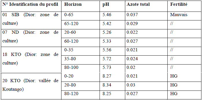 4.3.2.5. Etude de la fertilité des sols à partir de l’azote