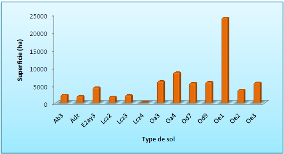 La figure suivante montre la répartition des sols dégradés en fonction de leurs caractéristiques morphopédologiques.