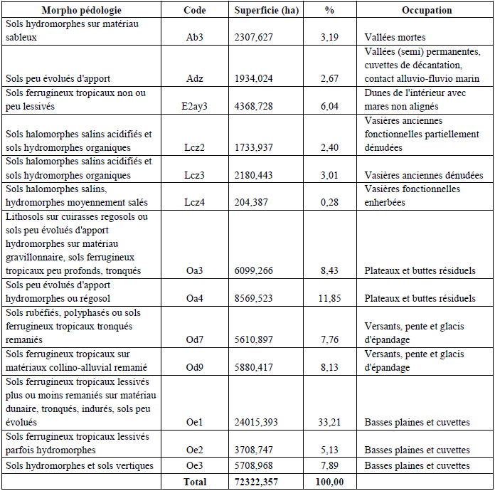Le tableau ci-dessous présente les différents types de sols dans la région de Kaolack
