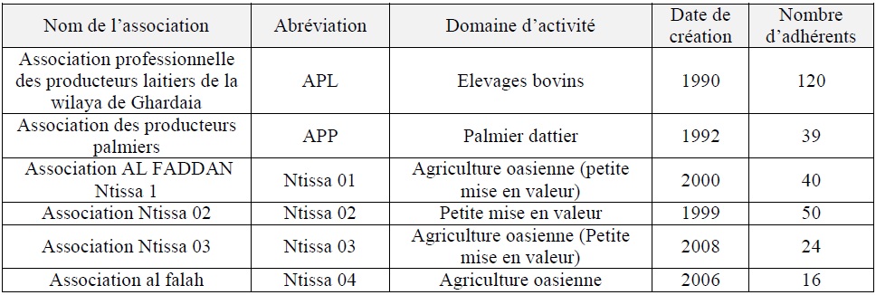 Retour au menu : EFFETS DES ACTIVITES DES ASSOCIATIONS LOCALES SUR LE PROCESSUS DE DEVELOPPEMENT DE LEUR TERRITOIRE : CAS DE LA VALLEE DU MZAB
