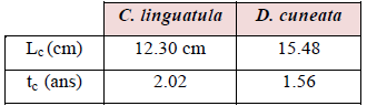 La température moyenne annuelle retenue pour cette étude est de 14°c pour C. linguatula et D. cuneata. Les résultats obtenus sont présentes dans le tableau suivant :