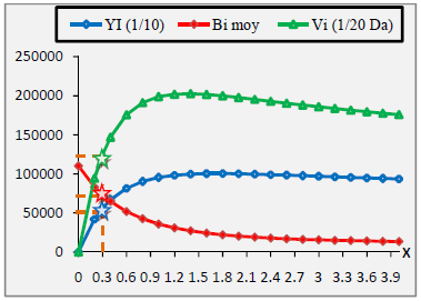 Chez C. linguatula la production maximale équilibrée est obtenue avec un facteur de F(X=1.8) alors que la production maximale économique équilibrée est obtenue avec un facteur de F(X=1.4). Concernant D. cuneata, Le facteur de F de 1.8 correspond donc au MSY alors que le MSE est obtenu avec un facteur de F(X=1), La valeur de F actuel chez C. linguatula se trouve sur la partie ascendante de la courbe de production (Y=5586) et de la valeur (V=2485014 Da), dont la biomasse est de 73130. Les résultats montrent que le niveau présent de l’effort de pêche est inférieur à celui qui correspond au MSY et MSE pour cela il est préférable d’augmenter l’effort de pêche ; contrairement à D. cuneata où cette valeur se situe sur la partie descendante de la courbe de la valeur (V) et au niveau du plateau de la courbe de production (Y). Les résultats montrent que le niveau de l’effort de pêche est supérieur à celui qui correspond au MSE. Ceci indique que l’exploitation de ce stock dépasse son niveau optimum, pour cela et en référence à l’analyse des cohortes, il sera judicieux de diminuer l’effort de pêche et de réduire la taille de capture. Concernant C.linguatula il est préférable d’augmenter l’effort de pêche tout en ciblant des tailles moyennes.