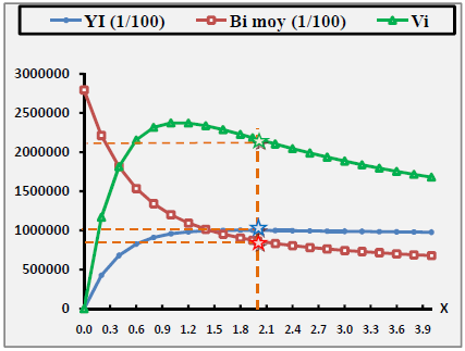 Figure 37 : Evolution de la production, de sa valeur et biomasse pour différents niveaux de x pour D.cuneata