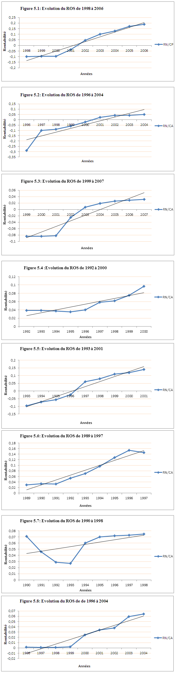 5.1.1 Présentation graphique des évolutions du Return On Sales (ROS) et tableaux des tests