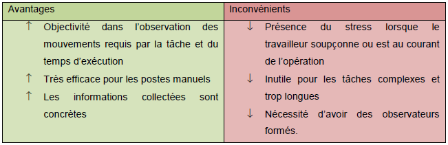 Cette méthode consiste à observer le travail comme il se présente. Cela permet de décrire toutes les phases d’un cycle de travail et d’y observer les conditions et les risques y afférant.