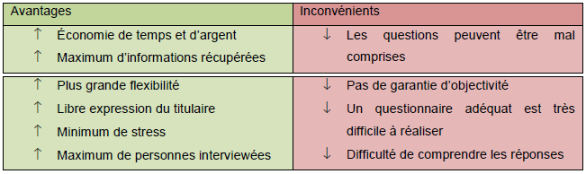 Le questionnaire est un document à remplir par l’opérateur lui-même. Il comporte des questions ouvertes et/ou fermées. Lorsque le questionnaire est rempli, il doit être contrôlé par le supérieur hiérarchique afin qu’il y ajoute des compléments d’information et ses commentaires.