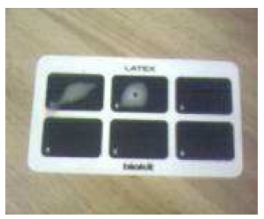 - On repose les deux gouttes sur une plaque en latex de lecture (voir photos 1) ;
