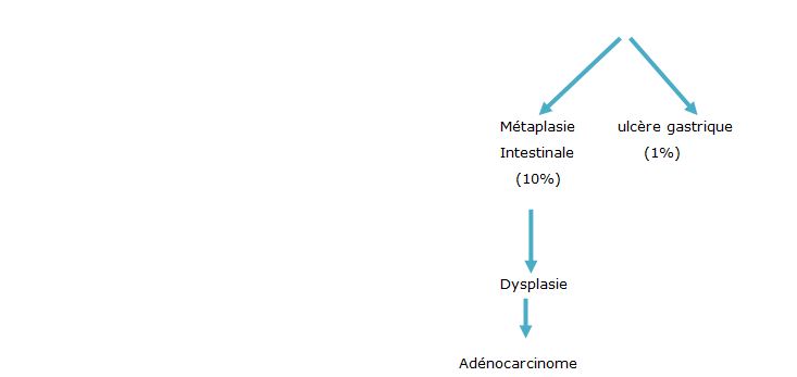L’infection à H. pylori est la première infection bactérienne associée au développement de cancers chez l’homme. Dans moins de 1% des cas, la gastrite va évoluer vers un carcinome gastrique.