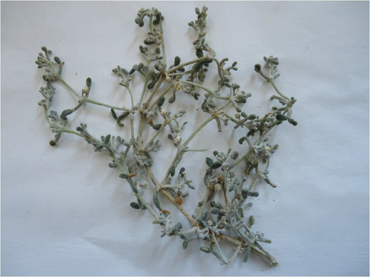 Les espèces du genre zygophyllum se présentent souvent sous forme de buissons bas, ramifiés dont les feuilles opposées (cf. Photo N°1), composées en général de 2 folioles cylindriques, charnues et gorgées d’eau, ont donné le nom à la famille. Les fleurs axillaires ont 10 étamines à base élargie. Le fruit de Z. album est une capsule portée par un pédoncule court. Elle est formée d’une partie inférieure soudée et d’une partie supérieure dont les 5 lobes libres ont à peu près la même longueur que la partie soudée [Smati., 2009].