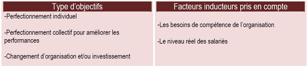 Les actions s’inscrivent donc dans un contexte global de l’entreprise. Le schéma(32) ci-dessous résume bien les facteurs qui induisent des besoins de formation