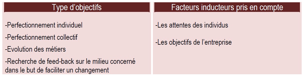Les objectifs à atteindre dépendront de la nature des dysfonctionnements constatés et par conséquent