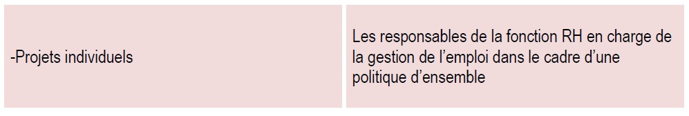 Ce second axe inclut les projets découlant de la politique de la GRH de l’entreprise. En effet, en fonction de ces projets et de la situation actuelle des ressources humaines, l’entreprise pourra avoir des projets de mobilité, de recrutement qui créent des besoins de formation.